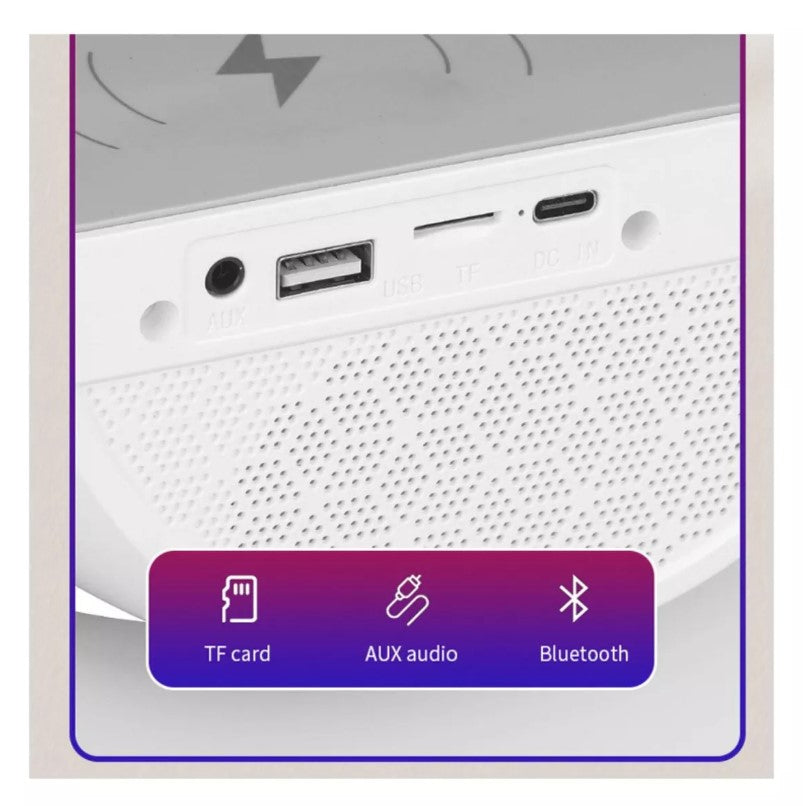 - Lámpara de ambiente con cargador inalámbrico multifuncional: no es una lámpara de atmósfera, sino que también tiene carga inalámbrica rápida de 15 W. Música, lámpara de sueño, lámpara de despertador, lámpara de atmósfera, lámpara de noche, efecto de luz deslumbrante, audio Bluetooth, reloj, despertador, etc. Puedes utilizarla cuando trabajas, estudias, lees y duermes. Es muy conveniente.